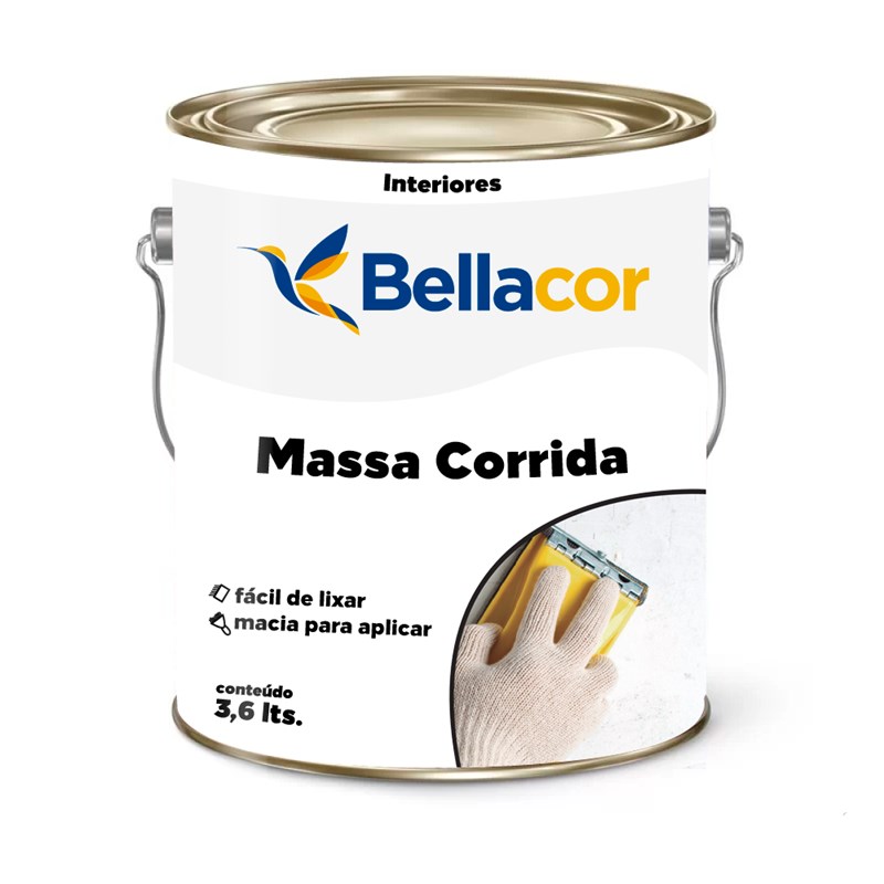 Massa Corrida Bellacor, nivela e corrige pequenas imperfeições em superfícies internas. Proporciona um acabamento liso e requintado. É de fácil aplicação e lixamento. Se aplicada uma fina camada, o galão de 5.4kg pode render até 15m².